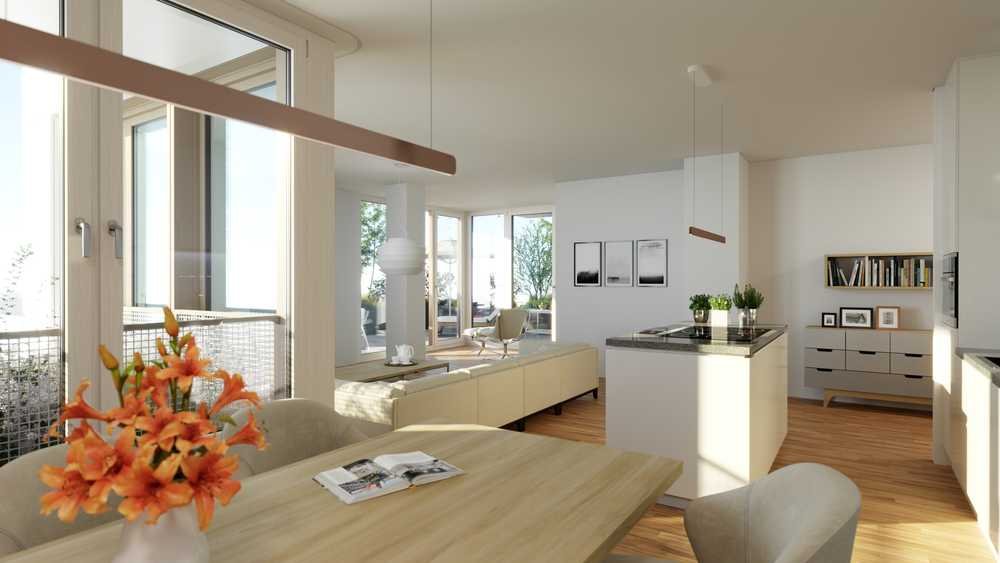 Das Bad en suite besticht durch eine bodengleiche Dusche und modernes Design. Ein Hauswirtschaftsraum nimmt Waschmaschine und Technik elegant auf. Zwei Balkone erweitern den Wohnraum ins Freie. Abgerundet wird dieses Angebot durch eine hochwertige Einbauküche. Die Hydrokultur-Begrünung an der Fassade sorgt mit selbstbewässerten Pflanztrögen für nachhaltig frisches Grün und ein angenehmes Mikroklima. Zur Wohnung gehören ein privates Kellerabteil und ein fest zugeordneter Tiefgaragenstellplatz.