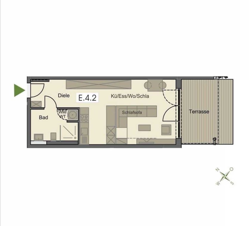 Die nach Südwesten ausgerichtete Anlage überzeugt durch einen unverbaubaren Blick ins Grüne und eine durchdachte Architektur: Erdgeschosswohnungen verfügen über großzügige Terrassen mit Gartenanteil, im Obergeschoss laden überdachte Balkone zum Entspannen ein, und im Dachgeschoss stehen weitläufige Dachterrassen zur Verfügung.
