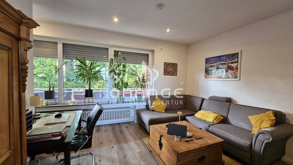 Die Zwei-Zimmer-Wohnung wurde fortlaufend modernisiert und vermittelt einen hellen und freundlichen Eindruck. Durch die geschickte Aufteilung bietet sie genügend Platz zum Wohnen, Arbeiten, Schlafen, Essen und Kochen.