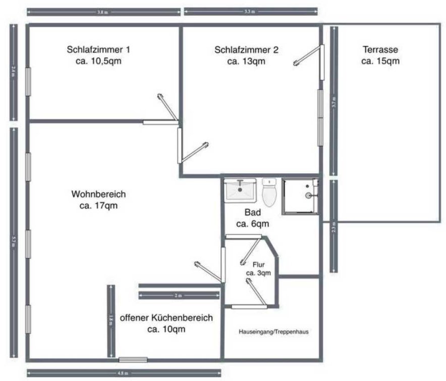 Vermietet wird ausschließlich an zuverlässige, arbeitstätige Personen. Haustiere sind nicht erwünscht.