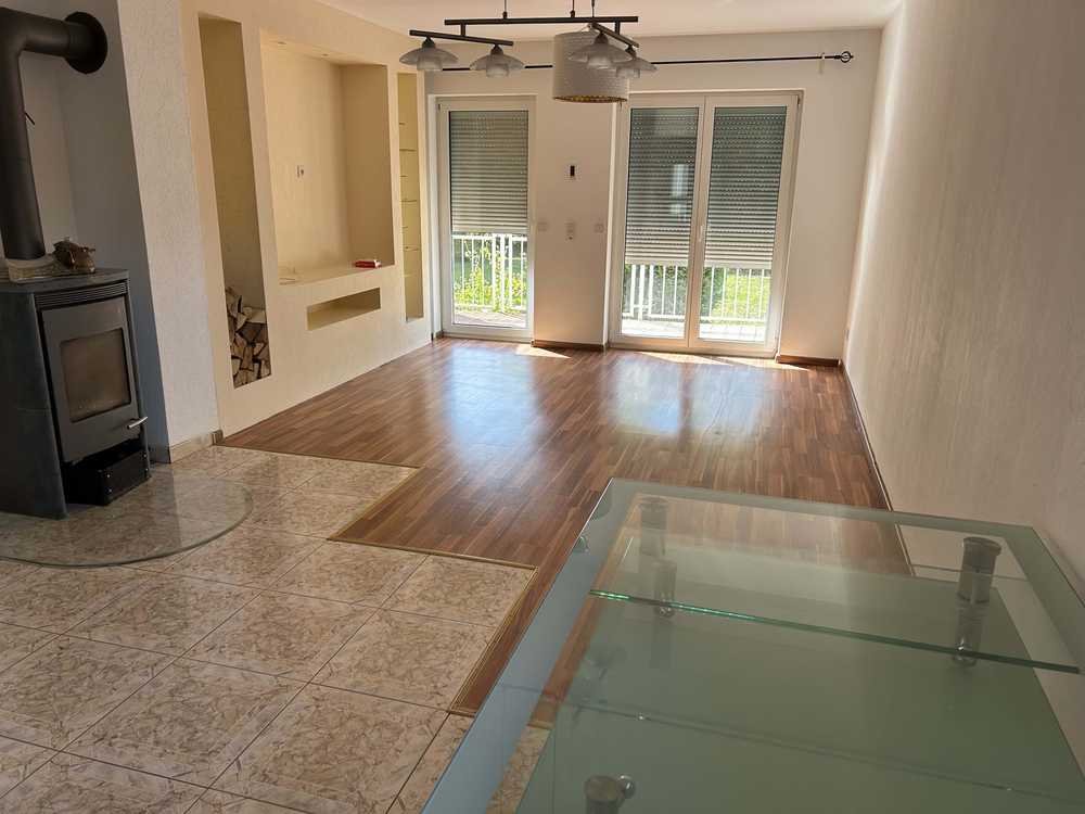 Die Doppelhaushälfte verfügt über 4,5 Zimmer. Im Erdgeschoss befindet sich das helle Wohnzimmer mit gemütlichem Kamin und direktem Zugang zum Balkon. Die offene Einbauküche und ein neu saniertes Gäste-WC befinden sich ebenfalls auf dieser Etage.