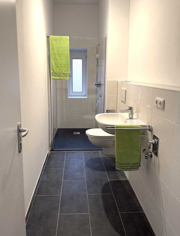 Alle Wohnräume, sowie die Diele wurden mit neuem Wohnlichen Laminat ausgestattet. Das Bad wurde umgestaltet und verfügt nun über eine große barrierefreie Dusche, sowie einen Anschluss und Stellfläche für eine Waschmaschine.