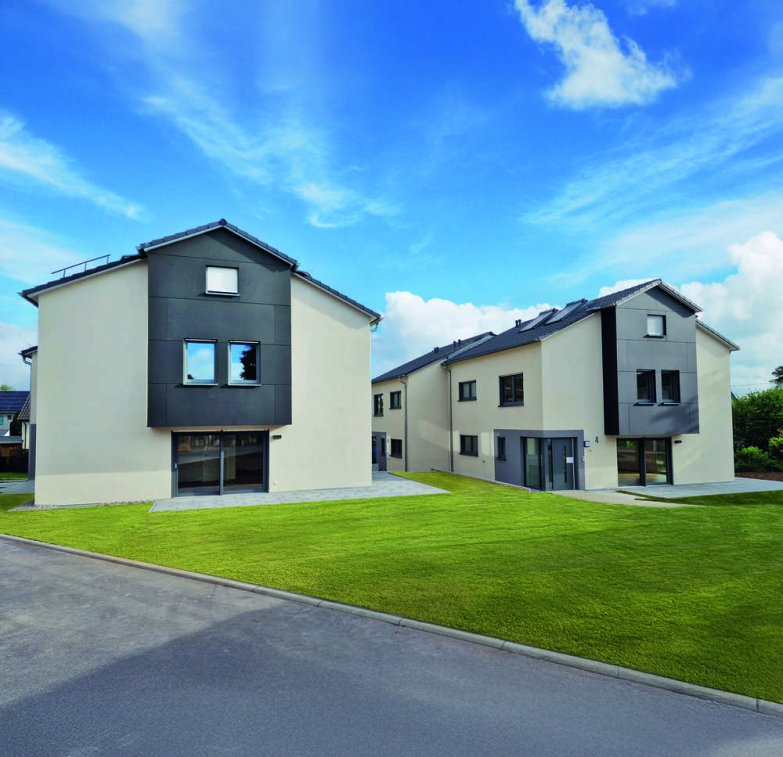 Eine moderne Architektur mit klaren Linien wird unterstützt durch gekonnt gesetzte Farbakzente. Nachhaltige Wärmeversorgung durch eine Luft-Wärmepumpe ist dabei eine Selbstverständlichkeit.