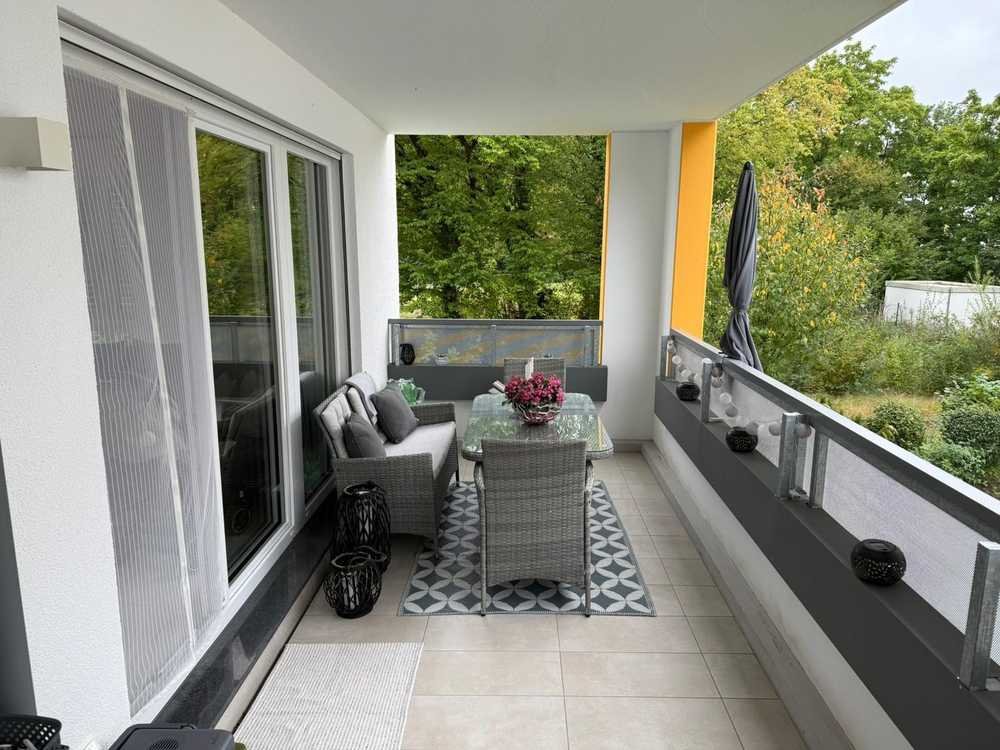 Die helle 3-Zimmer-Wohnung befindet sich in einer gehobenen Wohnanlage (Bj. 2021) im 1. Obergeschoss. Sie verfügt über einen großen Balkon mit Südwest-Ausrichtung.