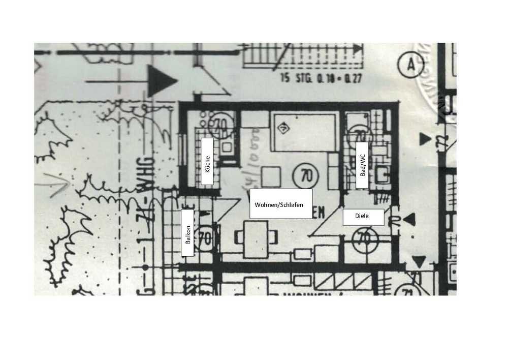 schöne 1-Zimmer-Wohnung mit Balkon, TG und Innengarten abzugeben, Kauf oder Miete
