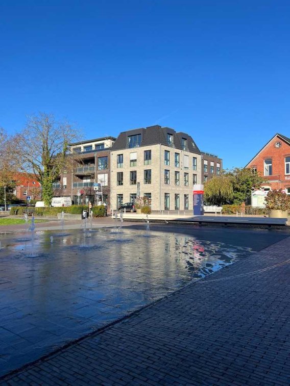Die Lage der lichtdurchfluteten Wohnung ist einzigartig auf der Achse zwischen Carolienhof, Rathaus und Marktplatz gelegen. Die Wohnung grenzt direkt an den Georgswall, der eine grüne Oase, einen Platz zum Ausruhen und Entspannen mitten im Auricher Stadtzentrum, bereit hält.