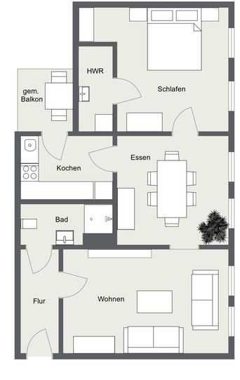 Das im hinteren Bereich befindliche Schlafzimmer bietet genügen Stellplatz sowie den Zugang zum HWR.