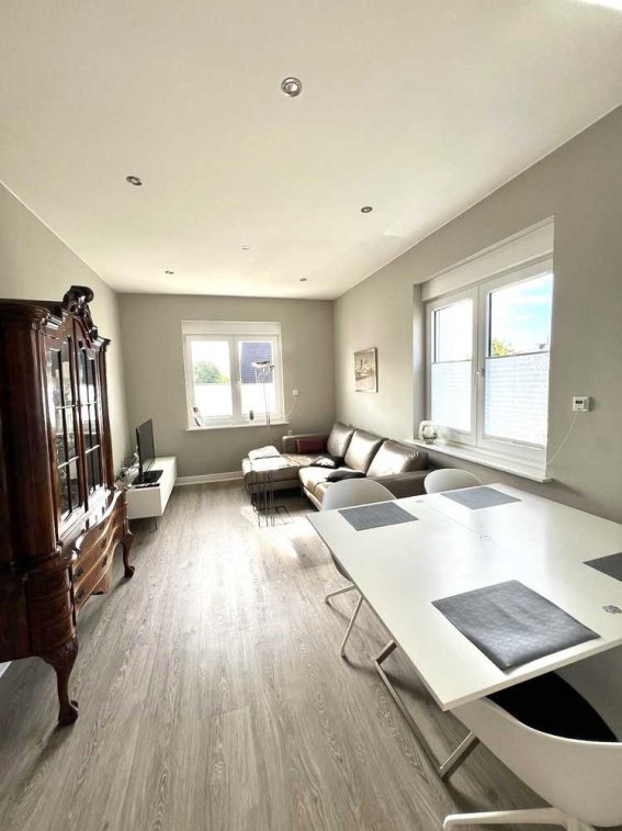 Diese helle und vollständig möblierte 3-Zimmer-Wohnung befindet sich im 2. Obergeschoss eines gepflegten Mehrfamilienhauses in der Sonnenbornstraße 19 in Düsseldorf-Holthausen. Die Wohnung überzeugt durch ihren modernen Stil, eine ruhige Wohnlage und eine geschmackvolle Einrichtung ideal für Singles oder Paare, die Wert auf Komfort und ein gepflegtes Wohnumfeld legen.