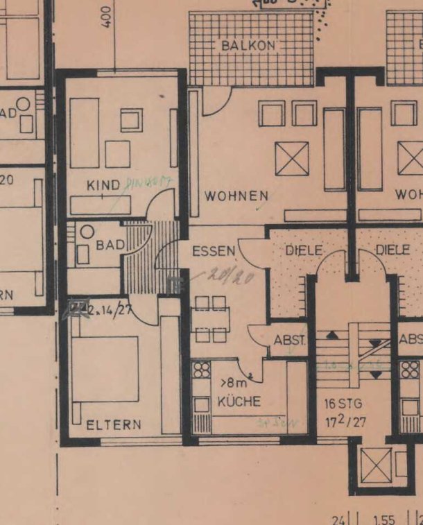 Zur Vermietung steht eine großzügig geschnittene Wohnung auf dem Backenberg 18. Sie überzeugt durch ihren besonderen 70er-Jahre-Charme und bietet flexible Nutzungsmöglichkeiten: