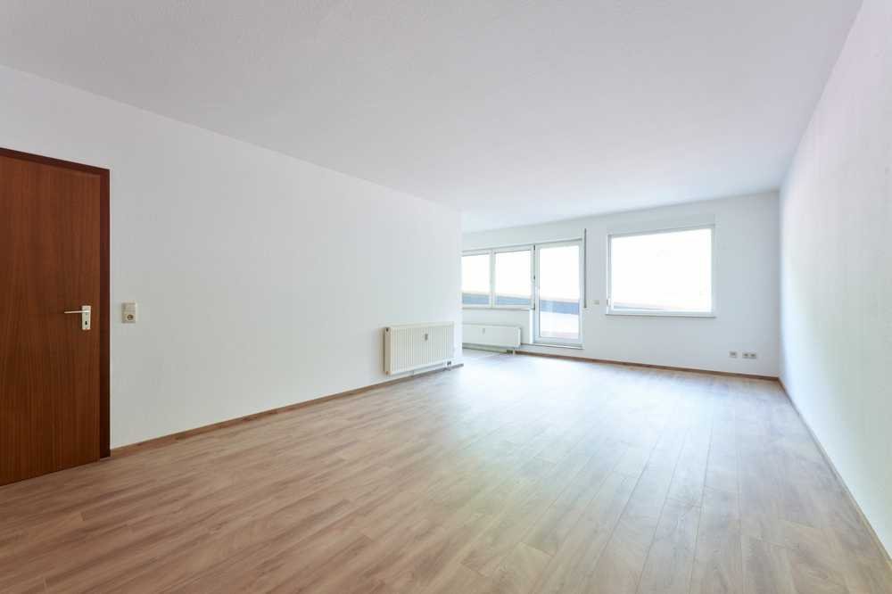 Der große Wohn- und Essbereich bildet das Herzstück der Wohnung. Die Küche ist funktional geschnitten und bietet ausreichend Raum für eine moderne Einbauküche sowie einen Essplatz. Das Schlafzimmer bietet Platz für ein großes Bett und einen Kleiderschrank.
