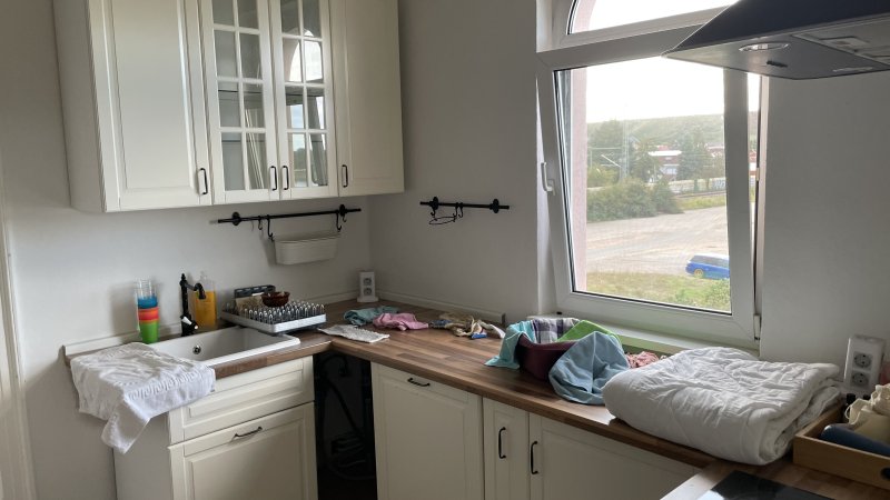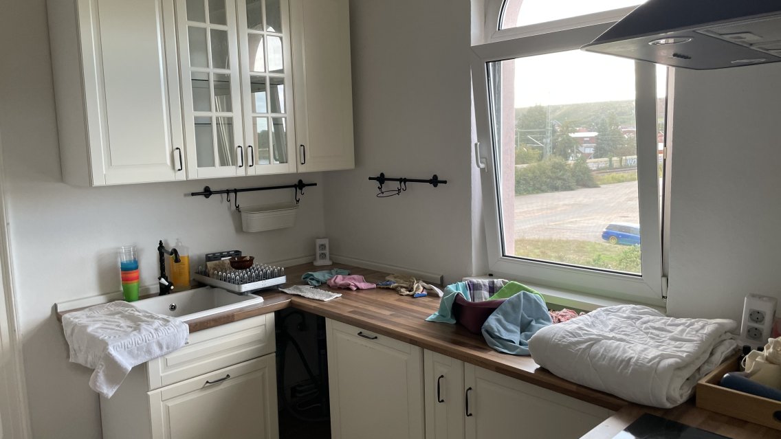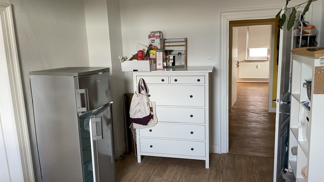 Die Wohnung ist im DG des Hauses. Sie bietet ein geräumiges Bad mit Badewanne und Waschmaschine. Die Küche ist voll ausgestattet mit Herd, Kühlschrank und Spülmaschine. Auch ein Bett und Schreibtisch ist mit drin. Die Wohnung ist 5Min von der S-Bahn und Bussen entfernt.