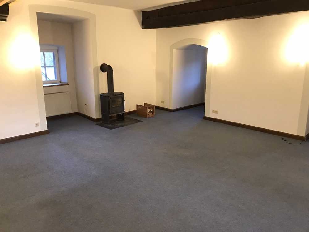 Die Wohnung liegt in einem denkmalgeschützten Gebäude mit Blick ins Rurtal. Ein Garten, ein Abstellraum und ein Speicher sind ebenso vorhanden wie ein Stellplatz für einen PKW.