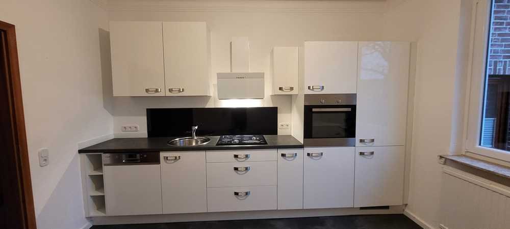 Die große Küche, ausgestattet mit einer weißen Einbauküche, ist auch gut als Wohnküche gut nutzbar. Hier ist genügend Platz für eine Essecke / Tisch mit Stühlen oder Stehtresen damit man nicht alleine in der Küche kochen muss.