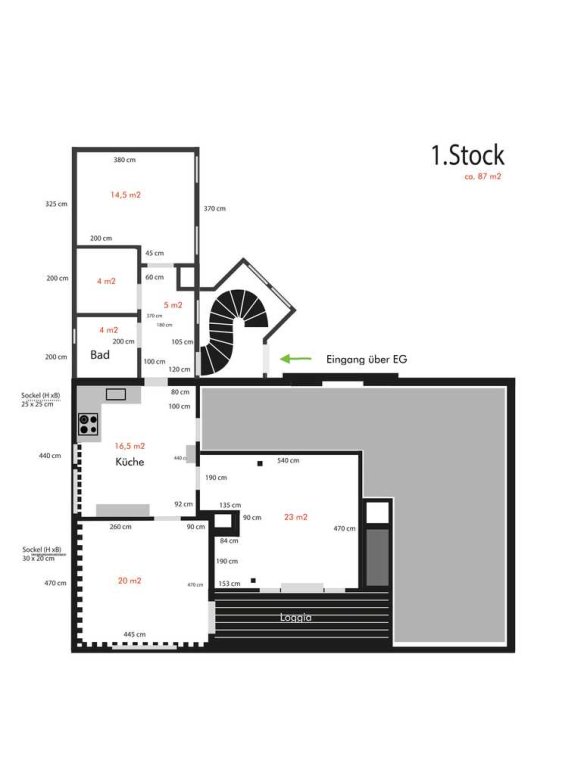 Die Wohnung ist leider nicht barrierefrei! Sie ist nur über eine steile Wendeltreppe vom EG ausgehend zugänglich.