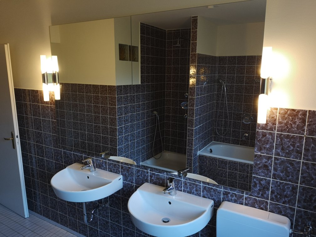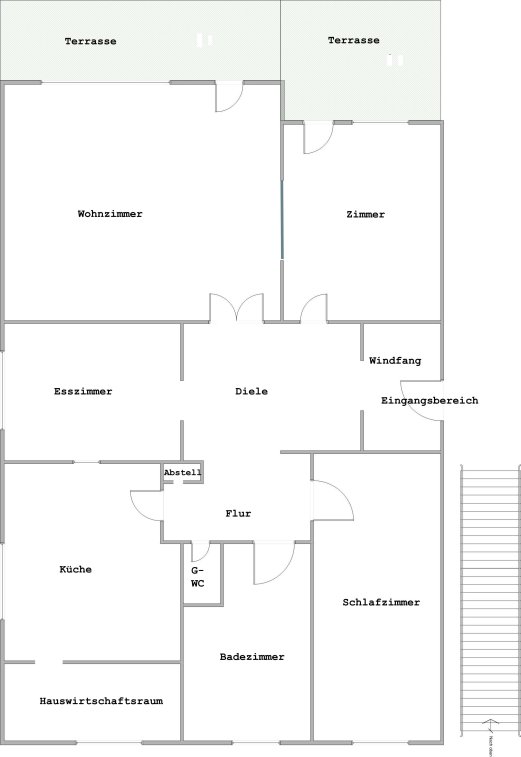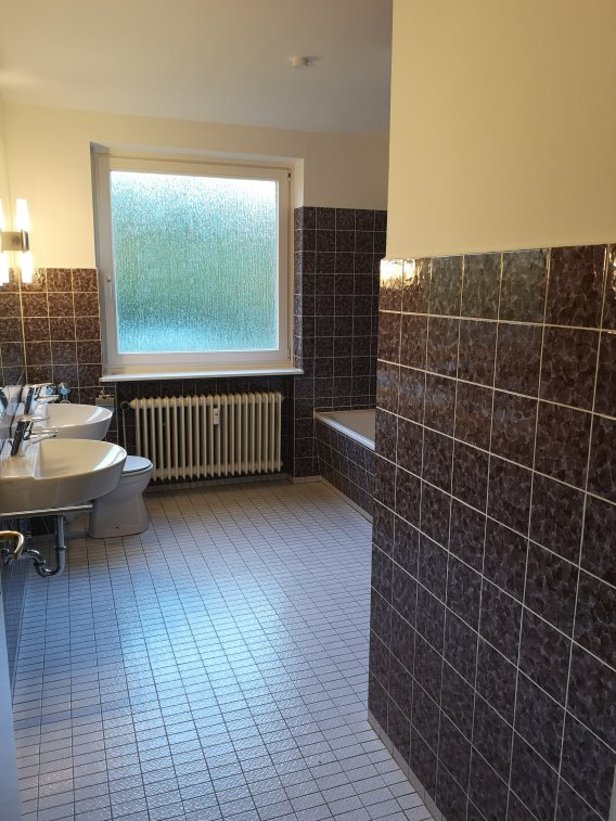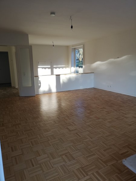 Die Wohnung befindet sich im Erdgeschoss und besticht durch ihre großzügige Raumaufteilung: Großes, helles Wohnzimmer (ca. 33 m²), ein weiteres Zimmer zur Terrasse (ca. 21 m²) jeweils mit einem Ausgang zur nach Westen ausgerichteten, über die gesamte Breite vorgelagerten Terrasse mit Blick ins Grüne.