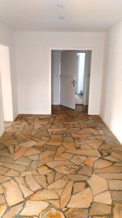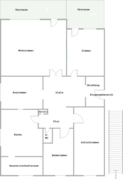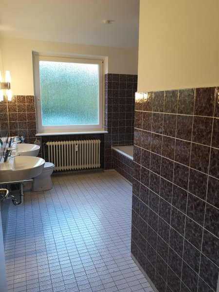 Waschmaschine etc. verbunden ist. Das Schlafzimmer und das Vollbad erreicht man über einen weiteren Flur. Von dort kann man auch das Gäste-WC, eine kl. Abstellkammer und die Küche betreten.