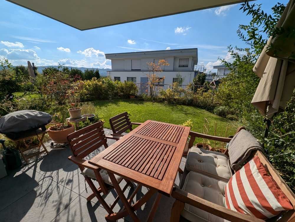 Die Terrasse ist zur Sonne hin ausgerichtet. Der angrenzende Gartenanteil wird nur von Ihnen genutzt.