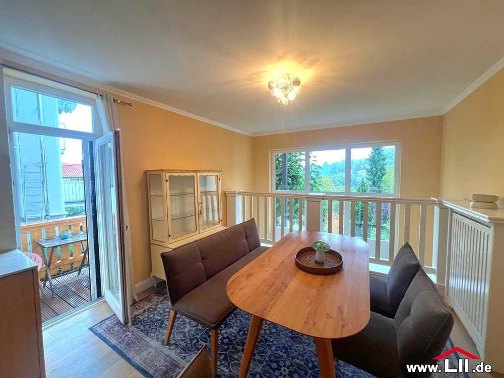 Der weitläufige Wohnbereich öffnet sich zur großzügigen Terrasse, die mit einem traumhaften Blick ins Grüne zum Verweilen einlädt. Von hier aus führt der Weg direkt in den gepflegten Garten. Die gelungene Verbindung von Wohnkomfort und Natur macht diesen Teil des Hauses zum echten Mittelpunkt des Alltags.