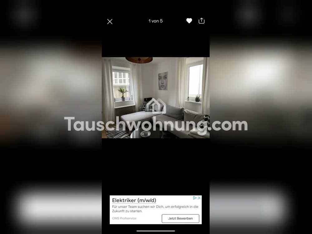 Da ich mit meiner Freundin zusammenziehen möchte, würde ich gerne meine sehr schöne 2 Zimmerwohnung gegen eine passende 3 Zimmerwohnung tauschen.