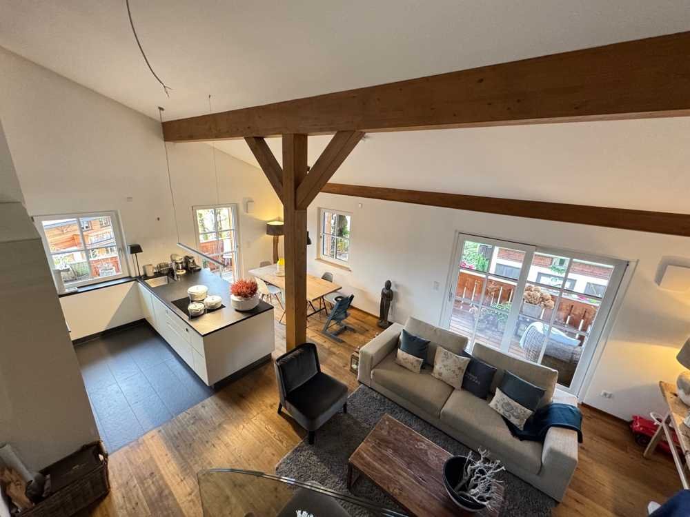 Die Wohnung begeistert mit einem durchdachten Grundriss und einem ganz besonderen Wohnambiente: Der großzügige, offene Wohnbereich mit Galerie lädt zum Verweilen ein und unterstreicht den das besondere Flair. Die großen Fensterflächen sorgen für viel Licht und verleihen dem Raum eine helle, freundliche Atmosphäre.