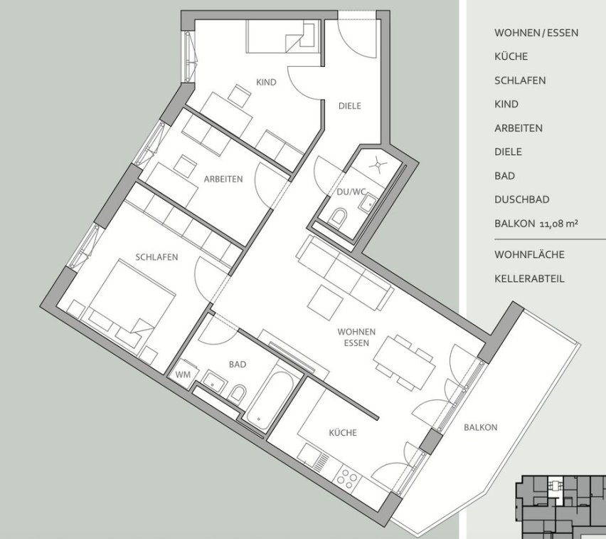 Neben 3,5 einladenden Zimmern bietet die Wohnung mit ein Badezimmern und einem separaten Gäste-WC. Das Objekt ist barrierefrei und über einen Fahrstuhl bequem zu erreichen. Außerdem überzeugt der gute, auch für WGs geeignete, Schnitt.