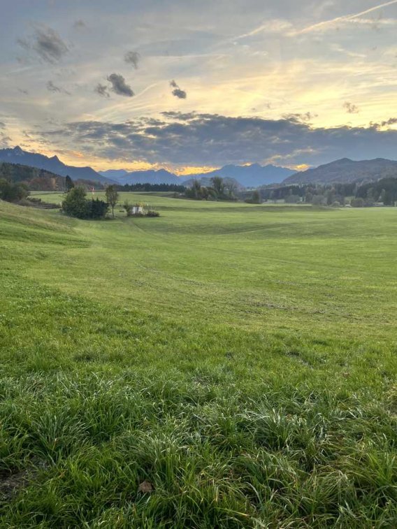 Aus dem Wohn- und Essbereich und auf dem nach Südwesten ausgerichteten Balkon eröffnet sich Ihnen ein atemberaubender Blick auf Hochries, Heuberg und drei prächtige Bauernhöfe. Der perfekte Ort, um die Seele baumeln zu lassen und die Sonne von morgens bis Abends zu genießen.