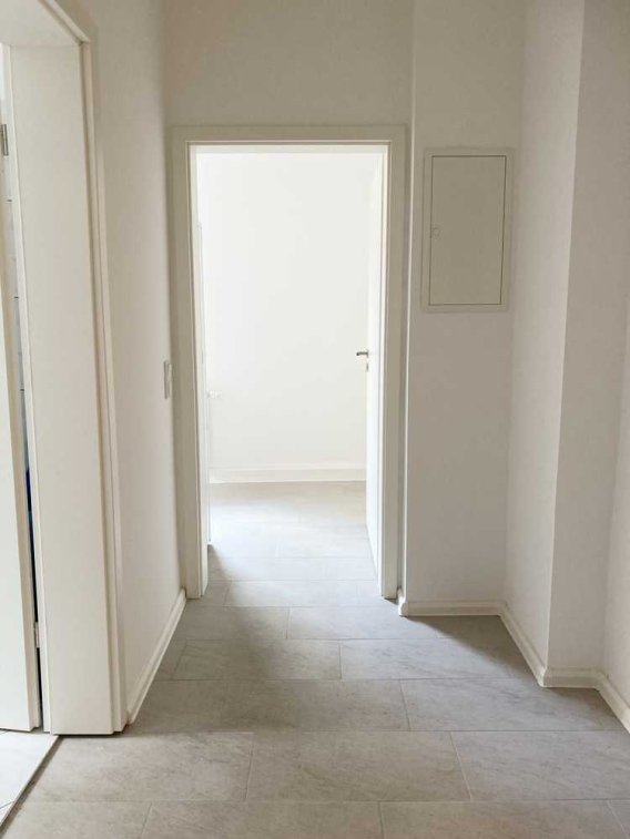 Im Rahmen der Renovierung wurden im Flur und in der Küche neue Fliesen verlegt sowie die Küche mit einer neuen Einbauküche ausgestattet. Alle Wände wurden neu verputzt, weiß gestrichen, Elektroinstallation und Heizkörper erneuert.