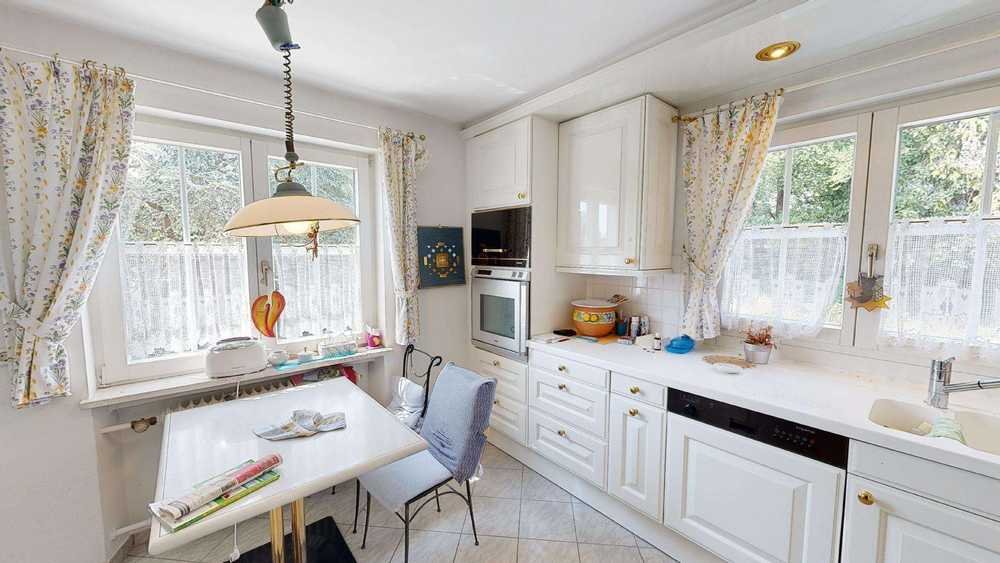 Ein Kfz-Stellplatz direkt vor dem Haus erspart die lästige Parkplatzsuche im Alltag. Die helle Einbauküche fügt sich harmonisch ins Wohnkonzept ein und lädt dazu ein, gemeinsam zu kochen und den Tag bei einem guten Essen ausklingen zu lassen.