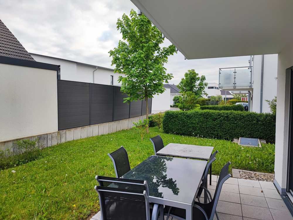 Zur Wohnung gehört abschließend eine Terrasse, die nach Südwesten gerichtet ist. So können Sie ungestört die Abendsonne genießen. Den umliegenden Garten können Sie mitbenutzen.