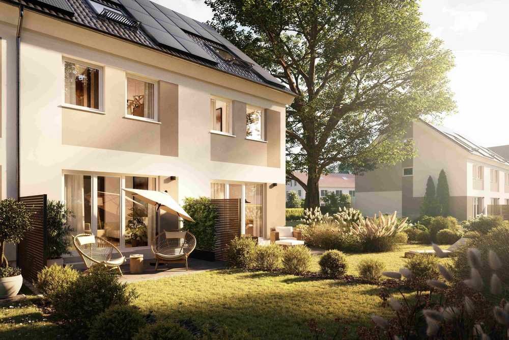 Die hochwertigen Reihenhäuser überzeugen durch eine nachhaltige Holzrahmenbauweise und moderner Ausstattung. Designbäder, Fußbodenheizung, elektrische Rollläden sorgen für höchsten Wohnkomfort.