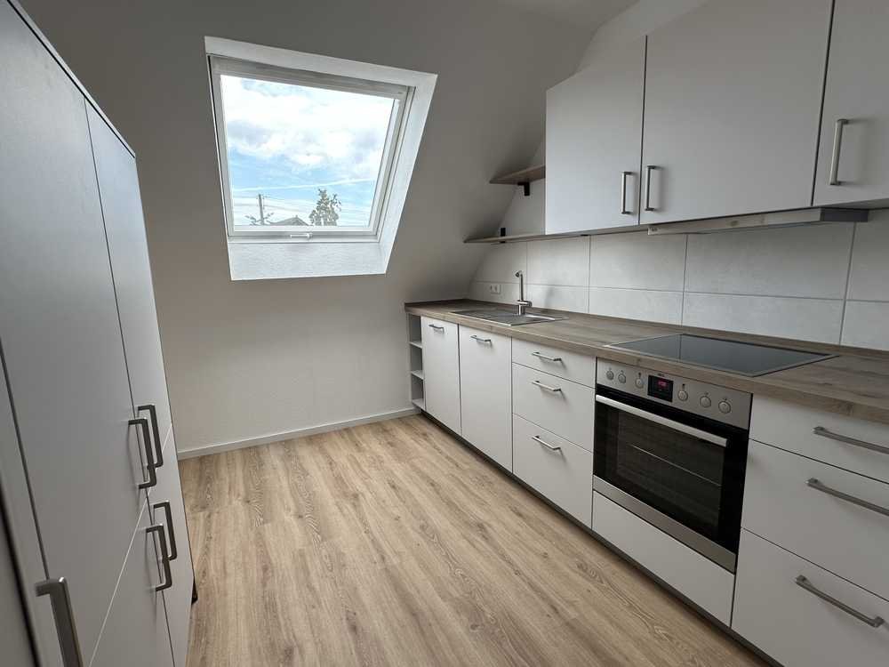 Die großzügig geschnittene 2-Zimmerwohnung mit ca. 68 qm Wohnfläche befindet sich im Dachgeschoss eines Zweifamilienhauses. Sie wurde in 2024 und 2025 umfangreich modernisiert. Das Tageslichtbad lädt mit flacher Dusche und Echtglasduschkabine zum Wohlfühlen ein. Der Waschtisch ist mit einem passenden Unterschrank versehen, in dem sich viele Utensilien praktisch verstauen lassen und der große Spiegel mit eleganter Beleuchtung bewirkt einen großzügigen Raumeindruck. Die separate Küche ist mit einer neuen Einbauküche ausgestattet, die keine Wünsche offenlässt. Markeneinbaugeräte unterstreichen die Qualität der Küche und der Raum bietet zudem Platz für eine kleine Sitzecke, in der man gut zu zweit seine Mahlzeiten einnehmen kann. Zusätzlich ist im Wohnzimmer Platz für einen großen Esstisch. Durch die raumbreite Glasfront zum Balkon sowie das Dachfenster ist das Wohnzimmer schön lichtdurchflutet und gleichzeitig verströmt die Holzdecke ein wohnliches Ambiente. Auf dem großen Balkon lässt sich dank Westausrichtung den ganzen Nachmittag die Sonne genießen.
