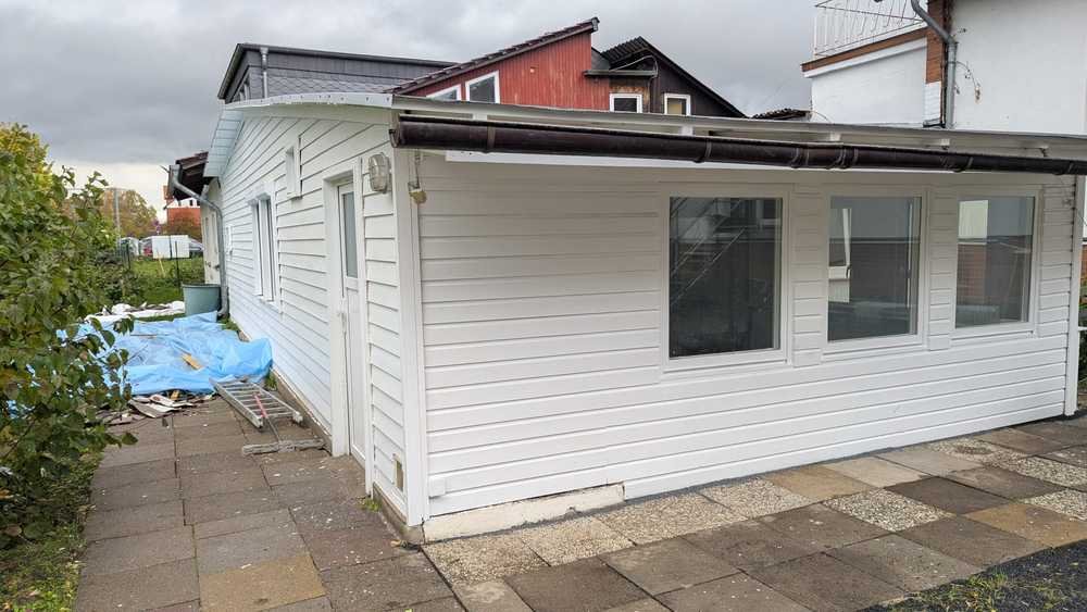 niedlicher kleiner Bungalow mit Wintergarten, offener Küche, Terrasse und Garten