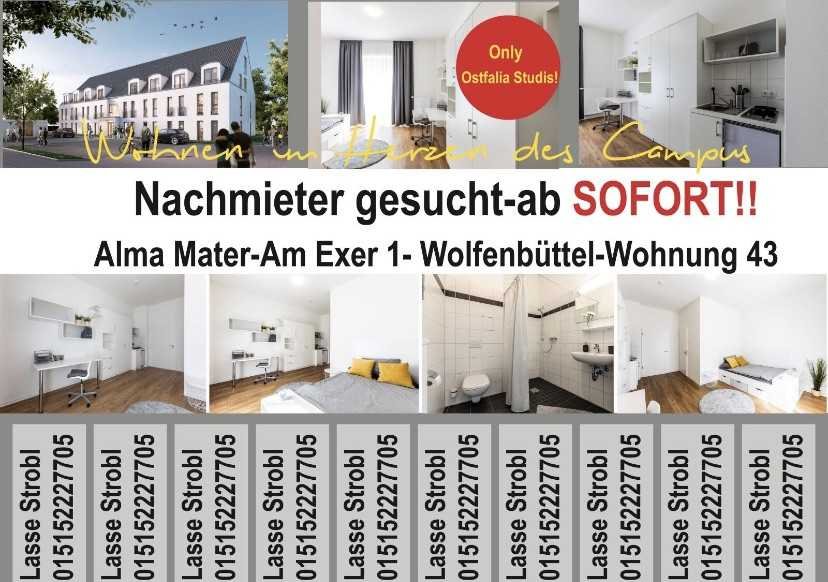 Da mein Studiumort sich kurzfristig verändert hat, suche ich einen nachmieter ab sofort. Das Studentenwohnhaus "Alma Mater" liegt direkt auf dem Gelände des Campus der Ostfalia Wolfenbüttel. Wohnen & Studieren quasi am selbigen Ort. Wichtig: Ich bin nicht die Vermieterin! Ich suche lediglich einen nachmieter der gerne in meine Wohnung einziehen möchte.:) Ich wohne in einer 22.86 qm studentenwohnung (ein Zimmer), welche möbiliert ist, eine große Dusche und große Fenster hat. Es ist eine angenehme und sehr praktische Wohnung für Stunden/auszubildende. Jede Etage verfügt über eine große gemeinschaftsküche wo jeder sein eigenes Fach etc. hat. Zudem erreichen sie die Hochschule, Einkaufsmöglichkeiten usw. Nur in wenigen Minuten zu Fuß. Natürlich sind auch mehrere Haltestellen gleich vor dem wohnkomplex verfügbar. Für weitere Fragen erreichen Sie mich per privat Nachricht oder unter 01747328056. die Wohnung befindet sich am Exer 43 A 38302 Wolfenbüttel (Neubau Wohnungen).