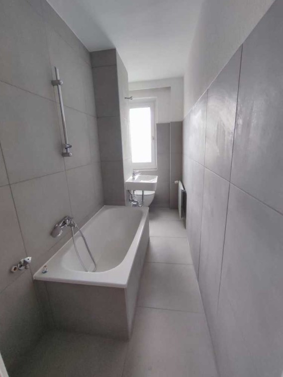 Badezimmer: komplett neu, Bad besitzt Badewanne und Fenster