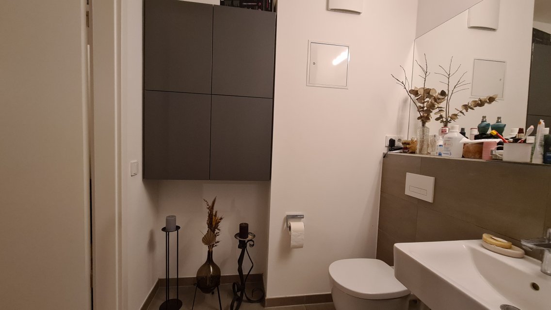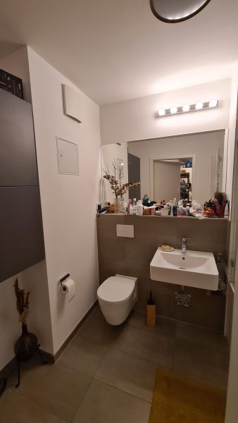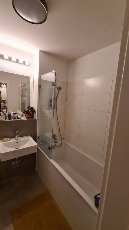 Moderne 1-Zi-Whg mit begehbarem Kleiderschrank, Loggia, Badewanne, EBK, Kellerabteil, Sauna, Fitnessraum und Gemeinschaftsraum mit TV und Küche im UG für 900 Euro warm per 1. Dezember 2025 zu vermieten - ev. steigt der Mietpreis nach meinem Auszug.