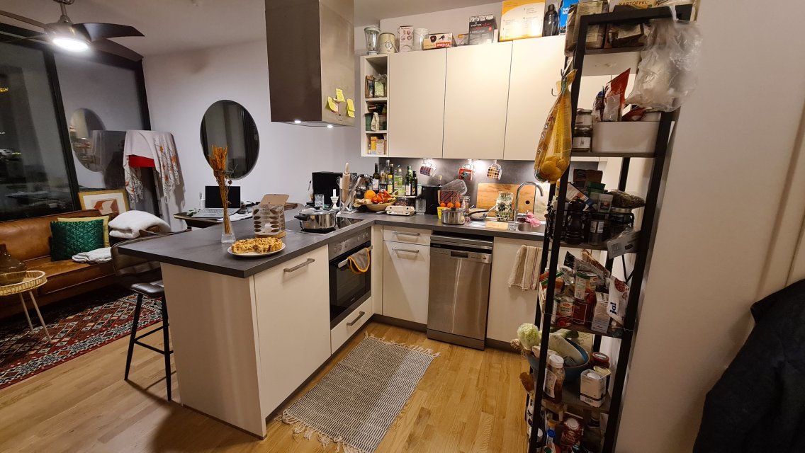 Die Wohnung wird vollmöbliert übergeben. Das heißt: Waschmaschine, Geschirrspülmaschine, Sofa und andere Möbel sowie Geräte, die alle in einem sehr guten Zustand sind, werden für eine Ablösesumme von insgesamt 1500 Euro übergeben.