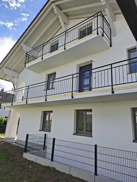 Diese helle 3,5-Zimmer Wohnung mit ca. 130 m² Wohnfläche befindet sich im 1. Obergeschoss und Dachgeschoss über 2 Etagen eines neu ausgebautem Zweifamilienhauses in Thaining als Erstbezug. Der Zugang führt über eine Außentreppe zum eigenen Eingang. Die Wohnung verfügt über ein durchdachtes Wohnkonzept mit guter Ausstattungsqualität und 3 Balkonen,. Der große Südbalkon bietet genügend Platz für Gäste und zum entspannen. Eine neue Einbauküche mit Kühl-/Gefrierkombination, Backofen/Herd und Spülmaschine, sowie genügend Staumöglichkeiten ist vorhanden. Im Wohnbereich im 1. OG befindet sich die Küche mit großem Essbereich incl. Holzofen, das Wohnzimmer, sowie die Garderobennische unter der Treppe, ebenfalls ist in dieser Etage das Gäste-WC mit Spiegel, sowie ein Hauswirtschaftsraum mit Waschmaschinenanschluss. Im Dachgeschoß befinden sich 2 Schlafräume (Elternschlafzimmer/Kinderzimmer oder Büro), sowie das geräumige Bad mit Badewanne, WC und Doppelwaschbecken incl. Schrank und Spiegel. In den Zimmern befinden sich direkte Internetanschlüsse, der Ort verfügt über Glasfaser. Beheizt wird dieses Objekt mit Erdwärme, zusätzlich wurde eine PV-Anlage auf dem Dach installiert. Im Innenhof stehen 2 Außenstellplätze zur Verfügung. Die Wohnung wird ab dem 1.12.2025 verfügbar sein. Haustiere sind in dieser Wohnung nicht gestattet.