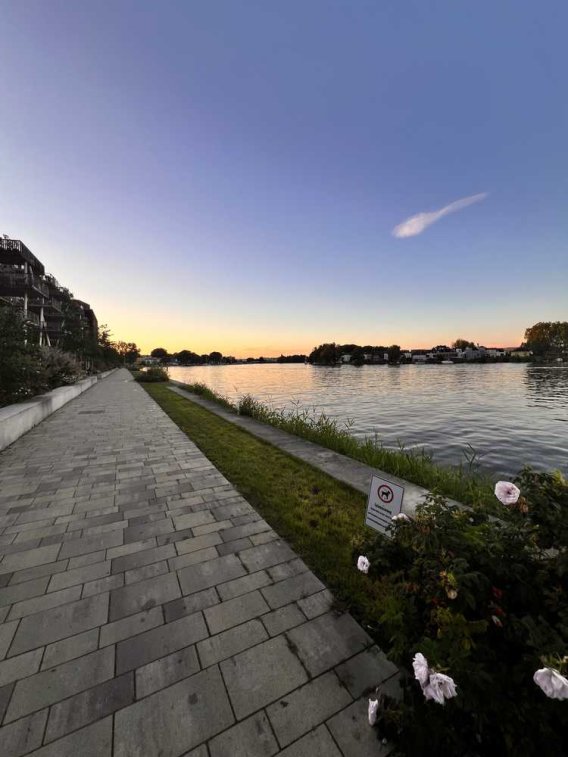 Die Wohnung bietet einen wunderschönen Ausblick auf den Fluss und die Teiche und verfügt über eine sehr gute Anbindung an U-Bahn und S-Bahn.
