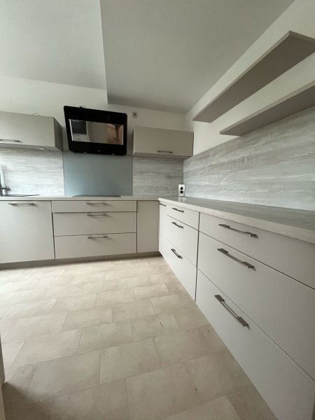 Die große Einbauküche bietet viel Platz zum Kochen, Genießen und gemeinsamen Beisammensein. Zwei moderne Bäder – eines mit Fenster und Badewanne, das andere mit komfortabler Dusche – sorgen für Bequemlichkeit und Flexibilität im Alltag.