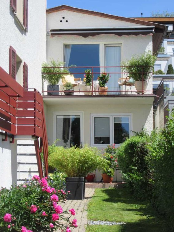 Die Wohnung befindet sich im Nebenhaus eines 4-Parteien-Hauses mit schönem grünen Garten, der mitgenutzt werden kann.