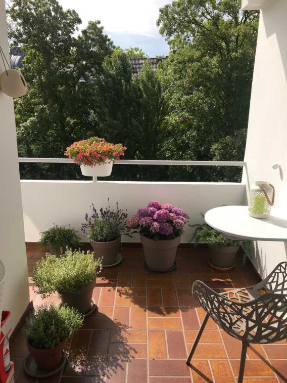 Das Schlafzimmer und die Küche verfügen über einen Zugang zum Balkon, der zum Garten ausgerichtet ist.