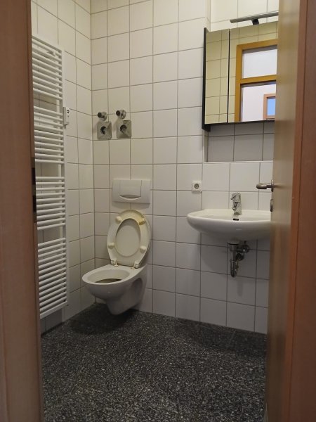 Das Bad ist mit einer Badewanne ausgestattet mit Schutz so das man auch drin Duschen kann.