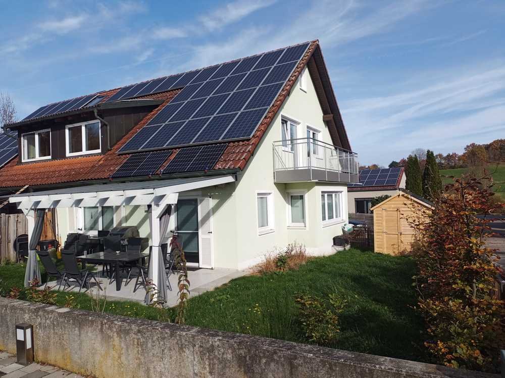 Vermietet wird eine Doppelhaushälfte mit neu überdachter Terrasse im Süden und großzügigem Balkon im Osten. Dazu gehört ein eigener Garten.