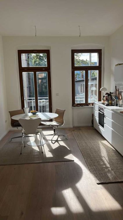 Diese attraktive 5-Zimmer-Wohnung mit ca. 120 m² Wohnfläche befindet sich im 2. Obergeschoss eines kernsanierten Mehrfamilienhauses in Halle (Nördliche Innenstadt). Die Wohnung verfügt über eine gehobene Ausstattung mit Dielenboden, hohen Decken sowie neuer Einbauküche und einen Balkon, der zum Entspannen einlädt. Ein eigener Keller und eine Kammer im Treppenhaus bietet zusätzlichen Stauraum. Die Wohnung wird ab dem 1.2.2026 verfügbar sein. Die Mitbewohner im Haus sind ausgesprochen nett, viele haben Kinder.