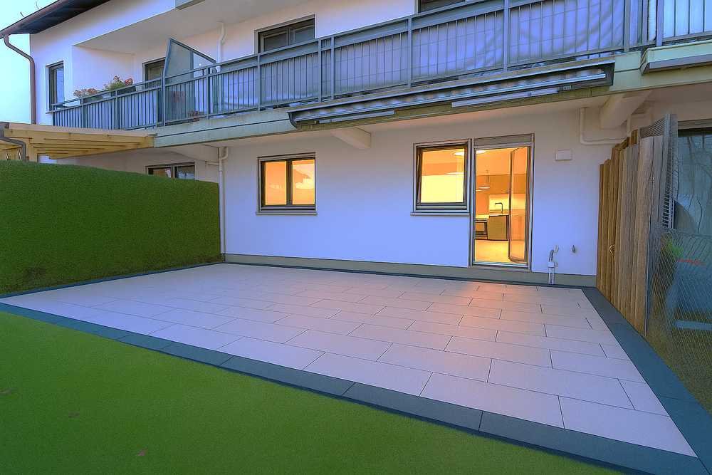 - ca. 20 m² große, neu angelegte Terrasse mit modernem Plattenbelag und sonniger Süd-/Südwestlage