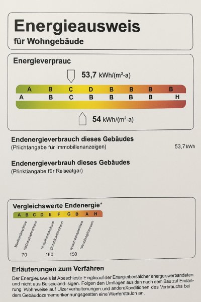 | Endenergiebedarf: | 53,70 kWh/(m²*a) |