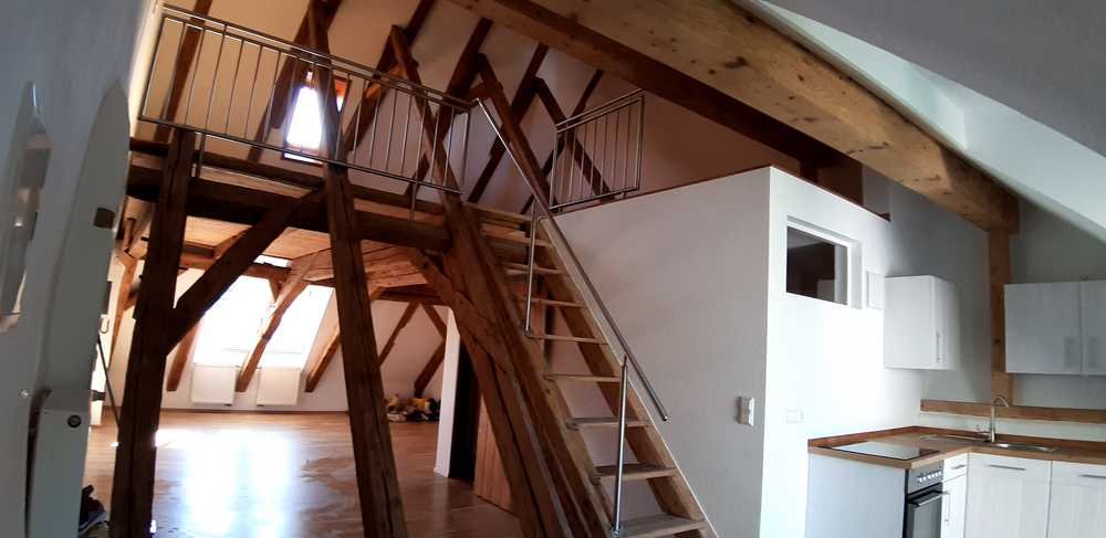 Im Zentrum von Isny, in ruhige Wohnlage am Espantor befindet sich diese Wohnung im Dachgeschoß eines denkmalgeschützen Mehrfamilienhauses. Die Wohnung ist mit Parkettböden und einer Einbauküche ausgestattet. Zusätzlich zur alten Wendeltreppe führt ein Aufzug direkt in den Wohnbereich.