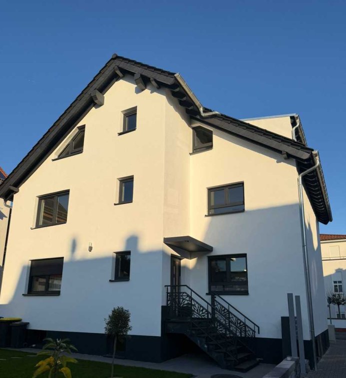 Diese moderne 3-Zimmer-Wohnung befindet sich im 1. Obergeschoss eines kleinen 3-Parteien-Hauses in sehr ruhiger Lage von Mörfelden-Walldorf. Das Gebäude wurde ursprünglich 1960 errichtet, jedoch 2025 vollständig und komplett kernsaniert – von den Leitungen über die Elektrik bis hin zu Böden, Fenstern und Heizung.