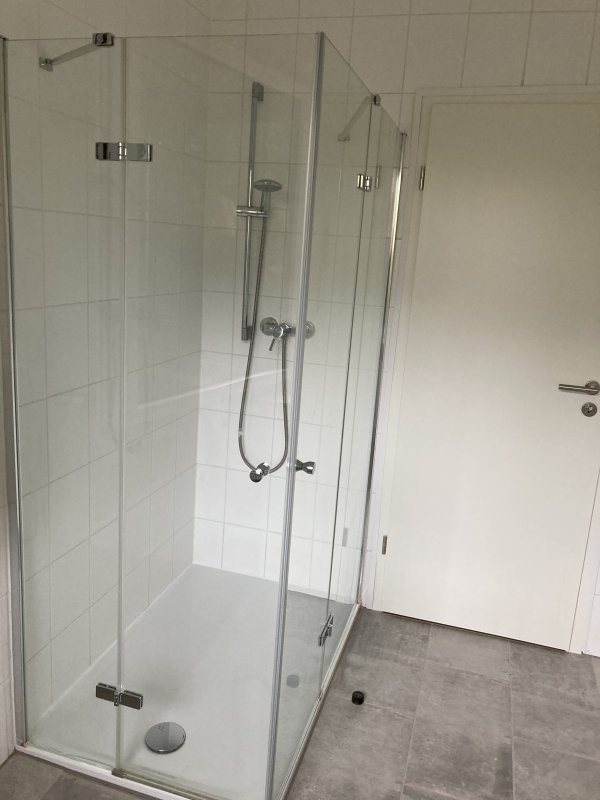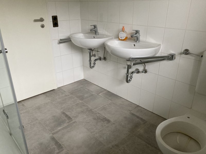 Das Badezimmer wurde erst vor 2,5 Jahren erneuert mit moderner Duschkabine und zwei Waschbecken.