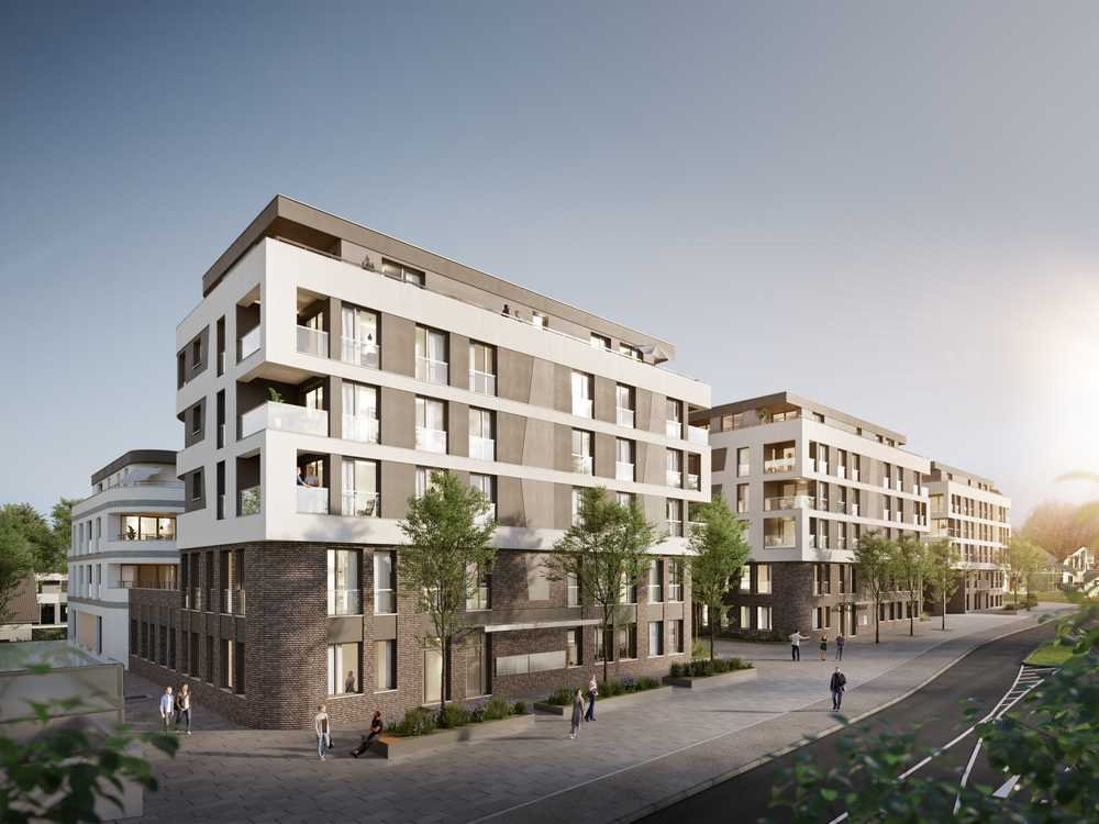 Bei den Gebäuden zur Römerstraße wurde architektonisch ansprechend eine geradlinige Klinkersteinfassade mit transparenten Balkonverkleidungen gewählt. Die Gebäude zur Walter-Flex-Str. verfügen über geschmackvolle Details wie abgerundete Ecken, bodentiefe Fenster und ein harmonisches Farbkonzept. Die Außenanlage besteht aus kleinen begrünten Innenhöfen mit Aufenthalts- und Spielflächen für ein reizvolles Wohn- und Arbeitsklima.